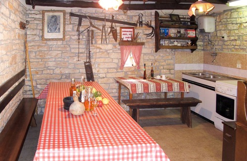 Single-family house "Josip", 2 storeys. Gljuščići 1 km from the centre of Sveti Petar u Šumi, 7 km from the centre of Žminj, 28 km from the centre of Rovinj, 28 km from the sea. For shared use: property 2'000 m2 with trees. Private: swimming pool angular (8 x 4 m, depth 130 cm, seasonal availability: 01.May. - 01.Oct.). WC in the pool area, outdoor shower (swing). In the house: washing machine. Parking (for 2 cars) on the premises. Shop 1 km, restaurant 1 km, bus stop 6.1 km, pebble beach 28 km. Marina 28 km. Please note: the owner lives on the same property.
