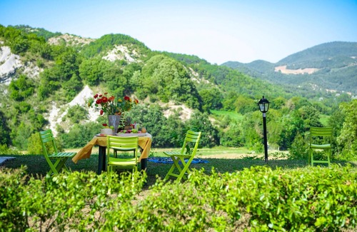 This holiday apartment is located on the Valguerriera estate about 4 km from Piobbico in a valley in the Apennines, an ideal destination for those who want to spend a relaxing holiday in unspoilt nature. The estate consists of the manor house and three country houses, the spacious communal outdoor areas and the beautiful communal swimming pool (17x10m) with hydromassage. A total of 11 attractively furnished holiday apartments have been created in the country houses. Each apartment has its own outdoor area with table, chairs and parasol where you can relax and enjoy your meals al fresco. Barbecue and washing machine for communal use. Car park on the property. 1 baby cot available. The property is located in the Marche, on the border with the regions of Tuscany and Umbria, near Piobbico (province of Pesaro and Urbino), in a quiet valley called Candigliano, one of the most beautiful and unspoilt valleys in the Pesaro hinterland, which has a mild climate and from where you can enjoy a wonderful view of the Apennines. In the surrounding area you will find cities of art and Renaissance towns such as Urbino, a UNESCO World Heritage Site, enchanting medieval villages such as Piobbico, Apecchio, SantAngelo in Vado and Acqualagna, famous for their truffles, or Urbania, Cagli, San Marino, Gradara and San Leo. The location of the property is also favourable for day trips to Gubbio, Assisi, Perugia, Città di Castello, Arezzo, San Sepolcro, Loreto, Florence and Siena, all places of great art-historical interest, or to San Marino, Gradara Castle, the Frasassi Caves or the Furlo Pass. DISTANCES: 4 km Piobbico (grocery shop and other shops, bank, pharmacy, doctor), 30 km Urbino, 55 km Fano and the beaches of the Adriatic coast, which can be reached in about an hour's drive. 6 km from a wellness centre and 10 km from a riding stable. Possibility of guided excursions. The 11 holiday apartments and the independent holiday home, which is made up of 3 of the 11 holiday apartments, have the following reference numbers: IMM127/422/423/424; IMM128/129/130/131; IMM421/412/419/420. As a welcome gift, guests receive a bottle of wine and a wine tasting (once a week) in a wine cellar with wines and typical products. For Novasol guests there are also special prices at a horse riding centre 10 km away and at a wellness centre 6 km away. WLAN in the outdoor communal areas.