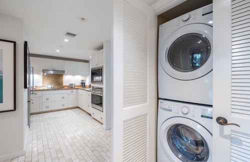 - Washer and dryer, iron, and ironing board inside the villa.