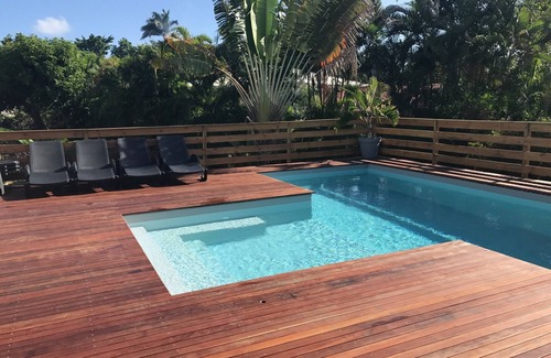- salt pool with deck terrace of 100m2 and shaded carbet with lounge area, bar area.