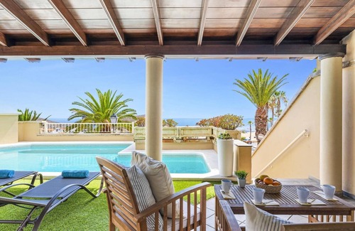 Villa Amara is a chic and stylish property with enchanting views over the coastline of Tenerife. Set in the village of Chayofa, there are a handful of bars and restaurants within walking distance plus plenty more to explore along the coastline. It’s a beautiful setting for your Tenerife holiday, with spacious interiors and 2 covered terraces for dining and unwinding. WiFi, pool heating and air conditioning/ heating in 3 of the bedrooms are included.