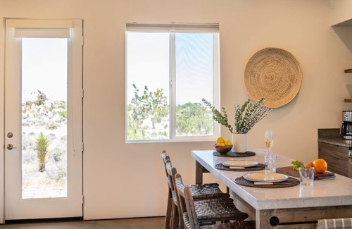Nestled on two acres of serene desert landscape and just a short drive from Joshua Tree National Park's west entrance, Villa Champagne offers a space to unwind and connect with nature.