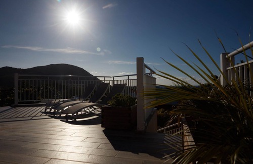 In the town of Deshaies, above the superb Grande Anse beach in a residential area, this new and very well equipped villa offers a view of the Caribbean Sea and Gros Morne.