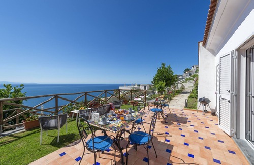 - Sea view terrace, equipped with a Vietri ceramic table, for outdoor dining, outdoor living area and BBQ area;