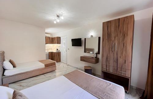 Villa George Giov offers accommodations in Sarti, a 2-minute walk from Sarti Beach. This apartment features air-conditioned accommodations with a balcony and free Wifi. The units come with tiled floors and feature a fully equipped kitchenette with a fridge, a flat-screen TV with satellite channels, and a private bathroom with a bath or shower and a hair dryer. The apartment complex offers some units with mountain views, and all units come with a kettle. At the apartment complex, units are fitted with bed linen and towels. Guests can relax in the garden at the property. Thessaloniki Airport is 81 miles from the property.