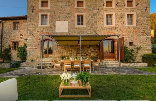 Just outside the charming village of Matraia, Villa Giannello offers a true immersion into Tuscan life. This beautifully restored farmhouse retains all the warmth and authenticity of tradition: terracotta floors, exposed wooden beams, stone walls, and antique furnishings that create a timeless atmosphere. Every room is decorated with taste and character, blending rustic elegance with comfort.