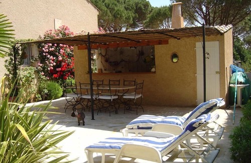 very quiet, comfortable, neat decoration near ST TROPEZ, summer kitchen facing the swimming pool with fitted head, landscaped garden 2500m2, car portal, car shelters, terraces around the villa tastefully decorated with comfortable armchairs to allow viewing your TV programs on gd screen tt to spend a good holiday very calm, ideally located, we are in the vineyards known as the St Maur castle near the center of Cogolin (3 km) where you have the shops. You can play ping pong a table is at your disposal, a swing is available for children the swimming pool with a small waterfall pleasing to the eye and very refreshing ear. The villa is very quiet