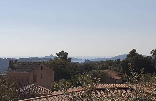 La vue imprenable des terrasses de L'arbousier et du Figuier offrent au premier plan un océan de verdure composé d'oliviers sauvages, de figuiers, d'arbousiers, de cistes, de myrtes, de chêne-verts sans compter une multitude de cactées. Au second plan, c'est le bleu incomparable de la Mer Tyrrhénienne qui ravit votre regard. Vous distinguez la célèbre Baie de Pinarello et la plage dite, Des Américains qui elle est plutôt connue des initiés!!!!