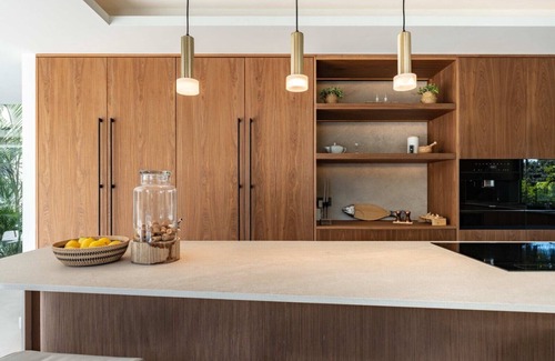 The villa can host a total of 10 guest with 5 bedrooms, each of them crafted with unique features and individually designed to a 5 star level. The ground floor welcomes the guests with a spacious living room, an open kitchen with glass doors opening to an al-fresco barbecue and dining area, inside a covered terrace overlooking the swimming pool and the wonderfully landscaped gardens. Additionally, this level includes three double bedrooms with ensuite bathrooms.