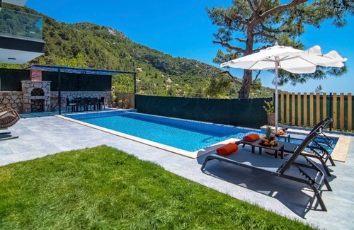 It is located in Kalkan Islamlar. It has 2 bedrooms and can accommodate 4 people in total. The pool terrace of our villa with private pool is sheltered and ideal for our conservative families. In Villa Luka, which has a unique sea view, you can enter the pool with your loved ones accompanied by the sea view and enjoy your holiday to the fullest. It has been prepared to offer you a quality holiday with its special and stylish design.