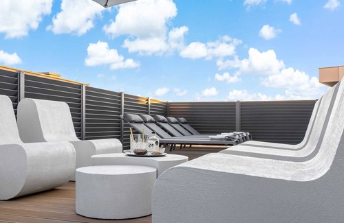 Outside, you'll find a heated infinity pool that overlooks the stunning landscape, providing a perfect spot to relax. The outdoor area is equipped with beach chairs, lounge spaces, and a wood barbecue, making it ideal for al fresco dining. For families, there's a playground offering football, volleyball, and badminton, as well as an outdoor jacuzzi on the balcony for ultimate relaxation.