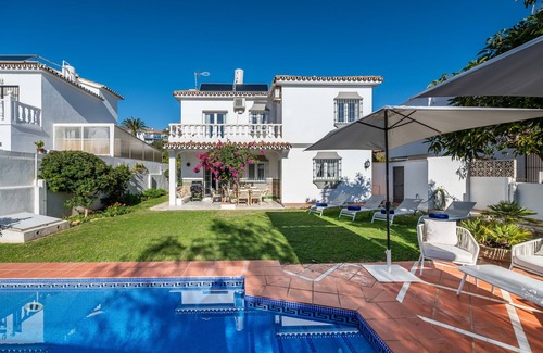 Enjoy an unforgettable stay in the heart of Marbella.This comfortable, detached villa features 4 bedrooms accommodating up to 8 guests, making it perfect for families or groups. Relax in the private pool surrounded by a beautiful garden, ideal for unwinding or letting the kids play.With private parking and a central location, you'll be close to shops, restaurants, and amenities while enjoying peace and privacy.Book now and experience Marbella like never before!