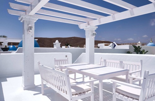 The exclusive villa Penelope is a fully equipped holiday home which is located in a private luxury development (called Bahiazul). The villa comes complete with private pool (heated from 1st November to 31st May),air conditioning, a fully equipped kitchen, washing machine, television, DVD player, free Wi-Fi, satety box and private parking. On the private roof terrace there is jacuzzi, a BBQ, a pergola with table and chairs and sunbeds. Guests at the villa can also benefit from the on site facilities which include the Bikiny Bar, Restaurant and private SPA. The villa is in a peaceful part of Corralejo, yet only 5 minutes by car from town and the wonderful natural park of the Dunes.
