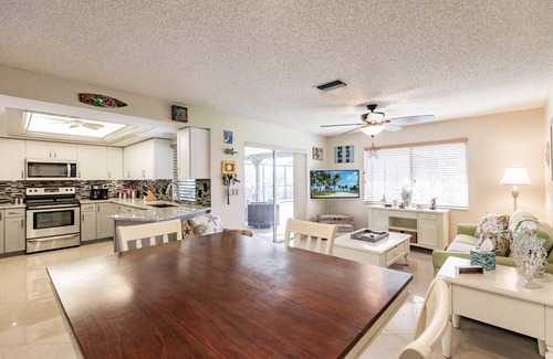 In the fully equipped kitchen with stainless steel appliances, prepare your favorite recipes before gathering around the darling dining table to share laughs and stories on the day's adventures. In the living area, you'll discover plush furniture, coastal decorations, and a flat screen smart TV. In the evenings, sip your favorite beverage on private lanai while you relish in serene views of the canal and private dock, located just steps from the home. At the end of a long day, retreat to the bedrooms for a peaceful and restful night's sleep!