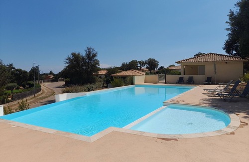 Yes, this Pinarellu villa has a swimming pool. Check the Facility Overview section for details about the pool and other available facilities.
