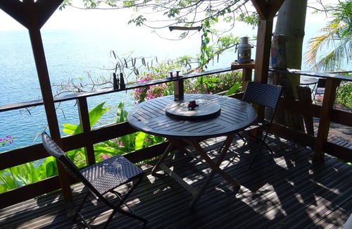Villa located 35 m above sea level, with direct access to the sea by stairs on private pontoon, ideal for swimming, fishing or diving on small coral reefs and volcanic rocks