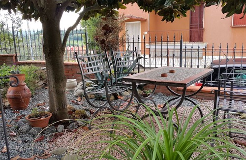 Independent villa a few steps from the center of Foiano della Chiana, but located in a quiet place. The house is a portion of a villa with an independent entrance of about 90 square meters plus the garden. Close to public transport, it is suitable for couples, lone adventurers, business travelers, families (with children), large groups and furry friends (pets). Independent villa in the heart of the Valdichiana, a few steps from the town center. This announcement refers to the ground floor: a rustic style tavern (about 90 square meters) with large living room, kitchen equipped with hob and dishwasher, bathroom with shower, hallway, laundry room, small bedroom with double bed and single bed. Large garden with tables and chairs ideal for relaxing or for lunch and dinner outside. Possibility to make tasty barbecues. Equipped garage. At the garage, an external spiral staircase leads to the panoramic terrace.