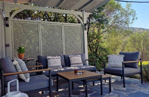Nestled on a secluded 2,000 m² estate at the edge of the traditional village of Makriotika, Villa Vounaki offers peace, privacy, and panoramic views of the lush Pylaros valley, the shimmering Ionian Sea, and the surrounding mountains. This is the perfect place to unwind and experience authentic Greek life—far from mass tourism.
