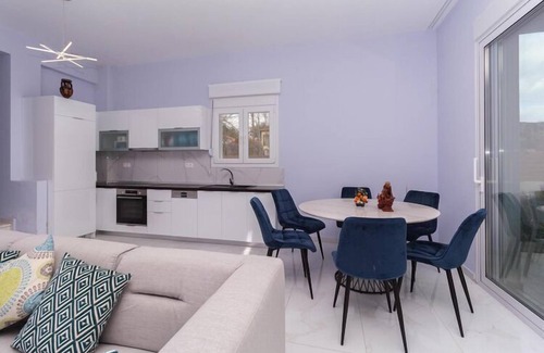 Newly built villa complex in the middle of the village of Ormos Panagias and just a few meters from the sea. Enjoy the beautiful view of the small fishing harbor and stroll along the promenade. The eight modern holiday homes are comfortably furnished and have a dishwasher, washing machine and air conditioning, as well as a furnished terrace and balcony. In the beautiful garden there is a heated communal swimming pool with hot tub and sun terrace. The restaurant, located directly on the water, will spoil you with exquisite specialties at any time of the day (for a fee). The beautiful sandy beach of Trani Ammouda with its turquoise waters is just a few minutes' walk away. Ormos Panagia is a small village in the northeastern part of the Sithonia peninsula. It has a small harbor used by fishing boats. The area is very popular with tourists in summer. From here, excursion boats start with excursions along the holy mountain of Athos. Details: consumption-based energy costs, bed linen, towels (changed daily), final cleaning, daily cleaning includedWLAN Mobility: Not suitable for people with reduced mobility