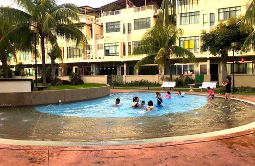 Its a 3 storey + 1 roof top landed properties with 5 bedrooms and 4 bathrooms suitable for families and friends get together vacation. On the ground floor there is a single bed room, toilet, kitchen, living room and a garden. On the first floor there are two master bedrooms with individual bath rooms and a coffee or tea place in between the rooms. On the second floor there are two bedrooms, one with double bed and one with single and double beds. There is a shared toilet and also a study room in between. Roof top with shelter suitable for outdoor gathering and BBQ if you bring your own utensils. It is also a gated properties with two private parking lots, swimming pools, kids play ground and gym.