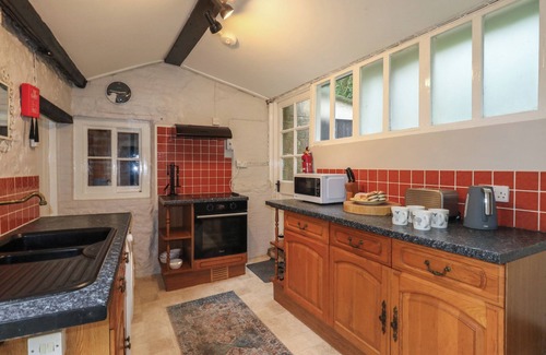 Amenities: Electric central heating. Electric oven and hob, microwave, fridge/freezer, washing machine. Smart TV, WiFi, selection of books. Power inc. in rent. Bed linen and towels inc. in rent. On-road parking. Enclosed rear garden with lawn and patio. Two well-behaved pets welcome. Sorry, no smoking. Shop 0.3 miles, pub 3 miles. Note: Steep staircase up to first-floor bedrooms. Note: There is a step up to the bathroom and dining room. Note: Woodburning stove is not in use. Note: Steps from patio to raised lawn. Note: No BBQ's are allowed at this property due to the thatched roof.