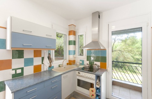 A vintage 2-levelmaisonette of 200sqm sleeping 7 guests, located in Akti Elias Sithonia, Halkidiki. Featuring 3 bedrooms, a fully equipped kitchen, 2 air-conditioning units, 1 bathroom, WC, TV with Netflix, private washing machine and free WIFI internet, the house is ideal for one or two families seeking comfortable accommodation in a quiet area, but just a few minutes walk from the sea (500m). There is a private turfed garden in the property with BBQ and outdoor shower and a large private balcony with beautiful forest views.