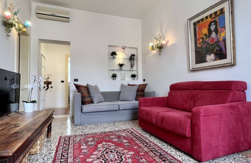 Venetian-style apartment located in the Historic Centre of Venice (Dorsoduro District). Apartment with magnificent view of the "Rio di Santa Maria Maggiore" consisting of a complete kitchen with dining table, living room with single sofa bed, two bedrooms (one double and one twin), one bathroom with shower and a service bathroom with washing machine. Venetian flooring, air conditioning, dishwasher, high-level furnishings. Extra bed available upon request (sofa bed). Check-in time: 3:00 PM to 8:00 PM. Arrivals between 8:00 PM and 11:00 PM may require a supplement of €50 (to be paid in cash upon arrival). ID: IT027042C2Z3NBFIX7