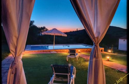 Vivienda Rural Aroche Parralejo Chico is a recently renovated vacation home in Aroche where guests can make the most of its pool with a view, garden, and barbecue facilities. This property offers access to a terrace and free private parking. The accommodation offers a shared kitchen, private check-in and check-out, and organizing tours for guests. This air-conditioned 2-bedroom vacation home comes with a seating area, a satellite flat-screen TV, and a fully equipped kitchen with a dishwasher. The tiled floors, fireplace, and peaceful vibe add to the ambience of the room. The property has an outdoor dining area. Guests at the vacation home will be able to enjoy activities in and around Aroche, like cycling, hiking, and walking tours. The vacation home has a picnic area where you can spend the day outdoors. Estación de La Nava is 24 miles from Vivienda Rural Aroche Parralejo Chico, while Arias Montano Rock is 24 miles from the property. The nearest airport is Seville Airport, 85 miles from the accommodation.