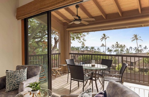 Nestled in the prestigious Wailea Ekahi Village, condo 30D is an exquisitely decorated island-inspired vacation rental that offers a perfect blend of luxury and comfort with breathtaking ocean views. The lanai provides an idyllic setting for outdoor dining or morning coffee, allowing guests to savor their meals while basking in the tropical surroundings and panoramic vistas of the Pacific.