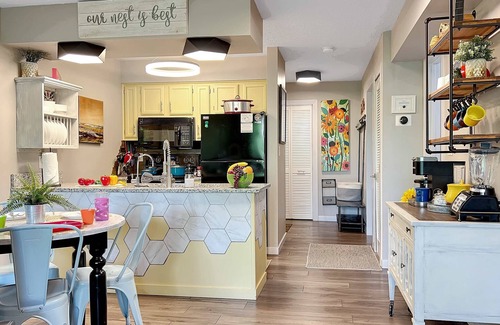 Inside The Nest, we've meticulously curated every corner with adorable honey-bee décor and charming touches guaranteed to delight. Our nest comfortably accommodates families with a fully stocked kitchen and two full baths. You'll find everything from pots and pans to dishes, making meals together easy as honey pie. And don't worry—the kids have plenty of games to stay entertained, plus there's a pack-and-play and high available for the littlest bees. You MUST reserve them when you make your reservation as they are first come first served.