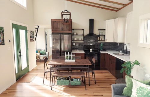 Nestled on a forested hillside near Sugarloaf Mountain, this charming tiny-house cabin blends modern comfort with natural beauty. Recently built in an industrial farmhouse style, Sugarloaf Hillside offers a private hot tub on an expansive deck, where you can soak up views of the woods and night sky. A short stroll leads you to Great Seal State Park, where hiking and biking trails feature stunning ridge-top views on either side of the cabin.