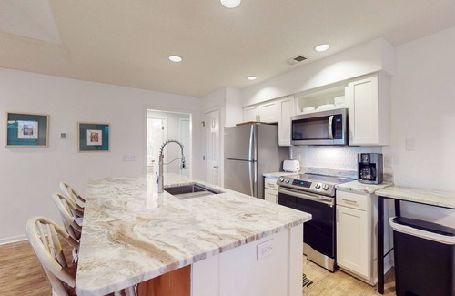 Inside, you’ll find a single-level interior with all the comforts of home - including central air-conditioning and a private washer/dryer. Cuddle up and watch favorite shows in the open living area. Craft delicious dishes in the convenient full kitchen, with stainless steel appliances and lots of handy extras. At night, unwind in one of two plush bedrooms, each with a private bath.