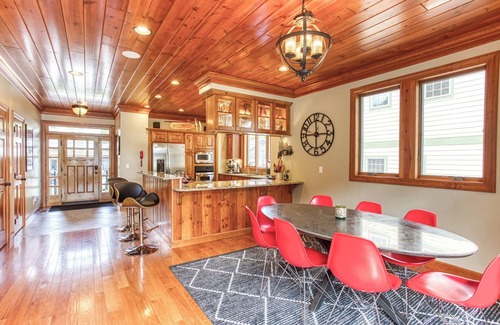 Stay comfortably in the heart of McHenry at this beautiful 4-bedroom house known as Red Gables. Walking distance from the Wisp! Marvel at the 4 king beds and 1 trundle bed, along with 5 bathrooms featuring a bidet, shower, and jetted bathtub. Relax in the serene surroundings and take advantage of the WiFi, AC, heating, hot tub, ping-pong/pool table, and table football. Fall in love with McHenry and enjoy the magic it has to offer. Equipped with up-to-date electronics. Amazing backyard with a boat dock for Summer fun. Walking distance from the Wisp for Winter activities! Used ski gear remains at the home for guests to use if needed. Towels and linens are provided, and laundry services are available for an extra fee.