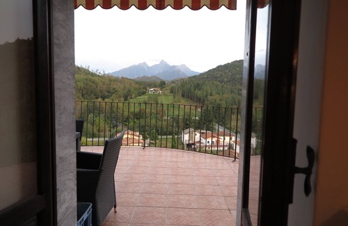 Our family's beloved apartment - part of what was once a castle - is recently refurbished with fresh paint and new furnishings. It has two bedrooms, a large and welcoming kitchen/living room, one bath, and our favorite space, the outdoor patio with a beautiful view of the Apuan Alps. Our patio is unique in our neighborhood, as it was once the base of a tower. This outdoor space has an awning for comfortable dining outside at any time of day. With high ceilings and thick stone walls, this apartment has a feeling of ageless serenity. Not a tourist neighborhood, this is an Italian village, where one is surrounded by Italian life.