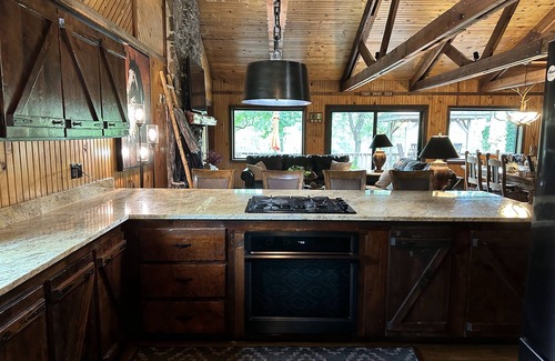 Enjoy preparing homemade meals in the comfort of your own cabin with a fully equipped kitchen featuring granite countertops and new stainless steel appliances. There's a large kitchen bar where guests can join the chef in the kitchen as they cook!