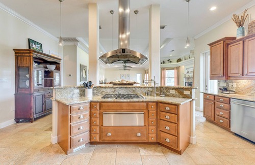 Dive into riverfront life at this 5-bedroom, 4.5-bath Arcadia vacation rental! ‘The Chateau on Peace River’ puts the water right outside your door, with a private dock for launching your boat and a sparkling pool overlooking it all. Set sail, book an airboat tour, or hike through Peace River State Forest, then fire up the outdoor kitchen and unwind on the screened lanai. Drop your anchor and book today!