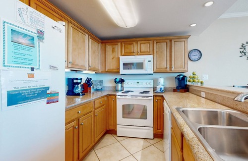 Inside, you'll find a spacious and inviting living area equipped with modern amenities, including a fully stocked kitchen with a fridge, microwave, and dishwasher, perfect for preparing meals after a day of adventure. The condo features a comfortable king bed and twin bed, ensuring a restful night's sleep. Enjoy your favorite shows with cable and Netflix streaming on the TV, or unwind on the balcony with breathtaking views of the Gulf and lagoon.