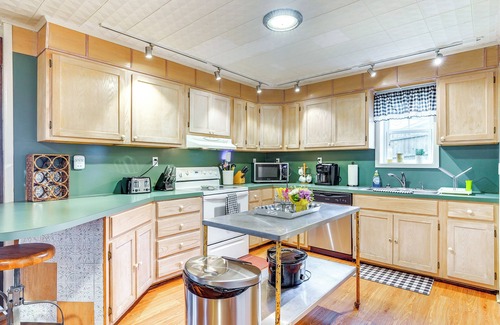 KITCHEN: Fully equipped, breakfast bar, center island cart, ample counter space, drip & Keurig coffee makers, crockpot, cooking utensils, dishware, glassware, silverware