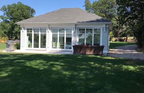 Your Summer vacation starts down a 330 ft driveway to your waterfront Cottage nestled by the water in private cove. A sprawling 3.5 acre property with large Lawn area to play. Outside you will find a large firepit 50 feet from the water and our private 30 ft Dock. Enjoy are newly installed Large in-ground Swimming Pool, complete with lounge chairs and seating. Grill on your deck with a new gas stainless BBQ while you watch the sunset over the water. You have aces to outdoor games like badminton, volley ball, horse shoes, and more which we provide. Close by you will find public Tennis and basketball courts and the airport which has daily helicopter rides to Block Island. The Casinos are a 15-20 minute drive away and a 12 minute drive to nearest Beach or several other Beaches. Famous Mystic CT and Newport Ri 25- 30 minute drive. The cottage boastsa roomy 2 Bedroom 2 Bath and a pull out couch, sleeps 6. Maximum 4 adults 2 children ( under age of 15) . Fully furnished. Everything you need to cook and entertain. Dinning Set. Linens provided. Central Air Conditioning. New Construction. TV in each bedroom and Living Room. Walk out to patio. Private Dock . Beautiful Sunsets. Parking for 2+ cars