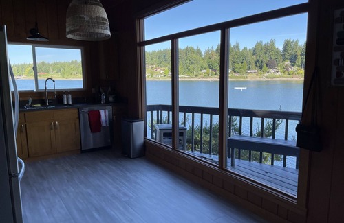Your vacation rental, Marea, sits right at the water's edge on low bank waterfront with unobstructed views that will not disappoint. This 3-bedroom 2.5 bath home is adorned with warm pine, quartz counters & stainless-steel appliances. There's a Permitted Deep water floating dock (if you would like to arrive by boat). The beach is littered with oysters & clams. The Acre +/- forested park like grounds gives space & privacy. The expansive deck is ideal for entertaining or enjoying the view from the hot tub. Perfect calm harbor for paddle-boarding, kayaking or water skiing. Paddle across the harbor to the local store. The property has plenty of parking and even space for an RV. Close to Penrose Point & Joemma Beach State Parks. 3 Kayaks are provided.