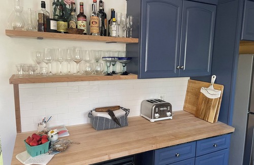 The house is clean and well outfitted with 3 ensuite bedrooms plus an office and a bonus room with another fulll bathroom. Very beachy (think Serena and Lilly vibe) with outdoor kitchen, pizza oven, fire-pit and large fenced yard. Total privacy. Within 5 minutes walk- quiet beach, Gossmans (now Bagatelle- a chic new French restaurant club), pizza, liquor store, bike rental, market, and multiple other restaurants. We are right at Montauk Harbor and if you wish to go to town it's a 5 minute drive or 15 minute bike ride. This is our home when we are not renting it out and so it's very well cared for and stocked with everything you might need from beach and bath towels to cleaning, cooking and entertaining supplies. Central AC. WE HAVE ELEVEN 5 STAR RATINGS ON THE OTHER BIG RENTAL PLATFORM. check it out.