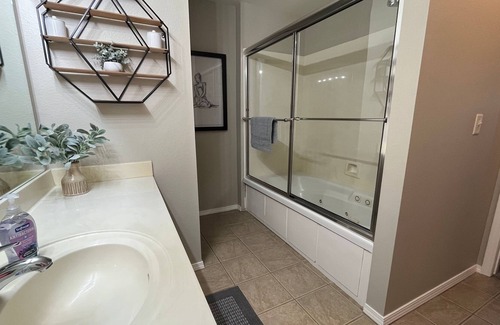 Both the master bedroom and the living room have smart TV’s, with over 300 pre-installed channels including Fox College Sports, ESPNU, and even HBO Max. The living room comes with a very comfortable recliner and a couch with two recliners for maximum relaxation. The living room also has direct access to the balcony. The balcony contains an electric grill, table and four chairs. Board games can be found in the living room for some friendly competitions. For those that like a good book, there are several intriguing reads available. And if you just need a night to relax, we also provide you with an ever-changing wide variety of Blu-Rays you may watch, from animated flicks for the whole family to some of the greatest action films and more. We assure you that you will have everything you need at Hilltop Haven!