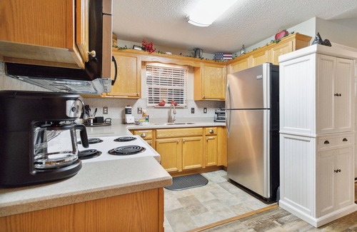Escape to the peaceful surroundings of the Daniel Boone National Forest with Rustic SMAK SHAK, a charming 3-bedroom, 2-bath cabin uniquely named after its owners' initials. Not only does it feature antique décor, including a Chinese tea set and a vintage iron, but it also radiates warmth and coziness, making it the perfect retreat. Whether you’re seeking serenity or outdoor adventure, Rustic SMAK SHAK offers the best of both worlds for couples, families, or small groups. Set against a beautiful forest backdrop, the cabin is ideally located just across from the resort’s swimming pool and is close to the courtesy boat ramp and hiking trails, making it an ideal getaway for nature lovers.