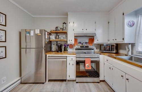 The fully-equipped kitchen features modern appliances and ample counter space for preparing delicious home-cooked meals. All necessary cooking utensils and cookware is available to whip up your favorite dishes and dine together. Ice trays are in the freezer, and a Brita water filter is in the refrigerator so you can have fresh, cold water to drink anytime.
