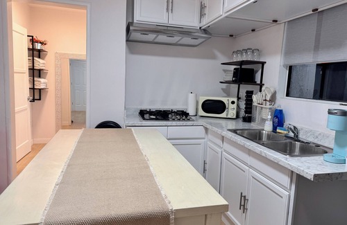 The guesthouse is located in a quiet neighborhood in East Los Angeles, offering both convenience and peace of mind.