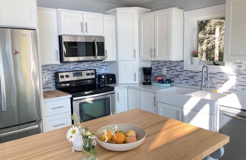 Relax in the garden (enjoy the outdoor furniture!) or sip a drink on the deck or patio of this 1055-sq-ft vacation home. As for the great indoors, you can come inside and enjoy the free WiFi and Smart TV.