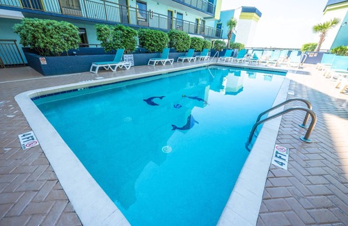 This oceanview condo features a King Bed with a Murphy bed, a private balcony, LCD TVs, a private bathroom, full-sized appliances, and a kitchen table. With upscale furnishings and decor including granite countertops in the kitchen. This condo has breathtaking views from both the balcony and the main living area. This condo will comfortably sleep up to 4. Tastefully decorated to give you the flair of the beach and allow you the enjoyment of the ocean view from your balcony. The private bedroom features a king bed, for additional sleeping space, there is a Murphy bed and a sleeper sofa in the living area. This tenth-floor unit provides awesome views of the beach and the city. A large swimming pool and Jacuzzi are located on the same floor just steps from your front door! The kitchen has a full-sized refrigerator, range, microwave/range hood, along with a dining room table to enjoy meals in your condo. The resort features an oceanfront pool deck with an outdoor pool and Jacuzzi, indoor water amenities - pool, lazy river, kiddie pools, and a Jacuzzi, a fitness room, and attached onsite parking (no crossing the street!)
