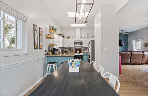 Welcome to When the Sun Goes Down, a charming 3-level cottage in the Village at Navarre that perfectly blends comfort, convenience, and coastal charm. With 4 bedrooms, 3 bathrooms, and accommodation for up to 14 guests, this bayside retreat is designed for both families and groups of friends. The spacious layout includes a king master suite, multiple bunk options for kids, and two additional guest bedrooms. The home features modern essentials like a washer/dryer, tankless water heater, and smart TVs, along with a bonus garage lounge stocked with beach chairs, toys, cornhole, and an extra fridge.