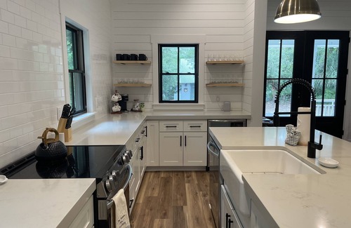 Outside, you will find a peaceful courtyard and outdoor shower that is perfect for enjoying the warm sunshine and fresh forest air. For those evenings when mother nature's less desirable creatures are biting, the screened side porch with a dining table is a great amenity! Whether you are sipping on a glass of wine, reading a book, or simply relaxing with family and friends, you will love spending time in the thoughtfully designed outdoor spaces.