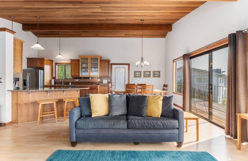 Wake up to breathtaking views of Lake Chelan and the surrounding mountains in this bright and airy Manson getaway. With vaulted ceilings, expansive windows, and an inviting open floor plan, the indoors feels just as refreshing as the lake breeze outside. After a sun-soaked day on the water, return home to unwind on the spacious deck, fire up the BBQ for a lakeside feast, or gather in the backyard for lawn games under the golden evening sky.